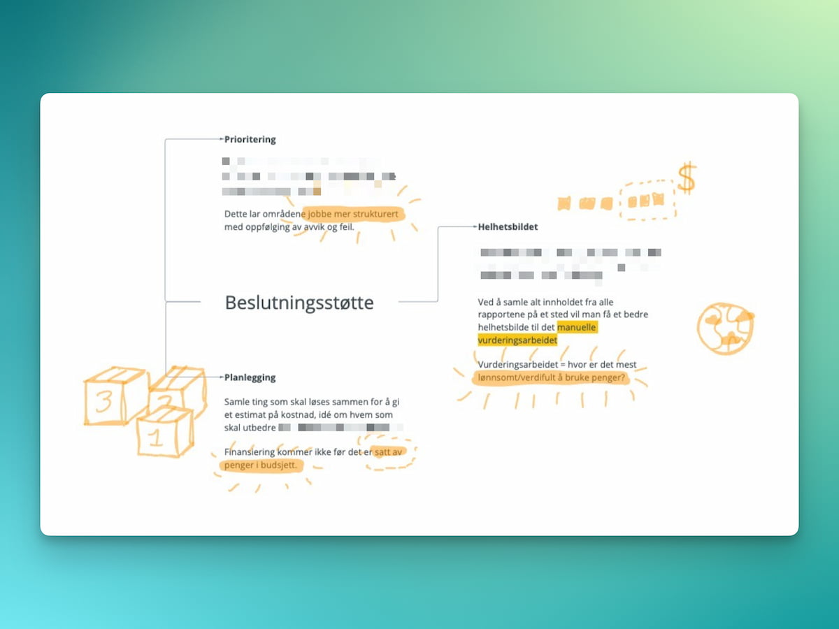 Petter: “Prototype” er kanskje feil her - men poenget er at som designer og fasilitator er ofte poenget med å lage noe eller tegne noe å få tilbakemelding fra andre aktører. Da er det viktigste at man kommuniserer godt nok til at det er mulig for andre å kritisere. Så hvis en stygg blyanttegning er veien til konstruktiv kritikk, er det bare å stille seg “lagelig til for hogg”.