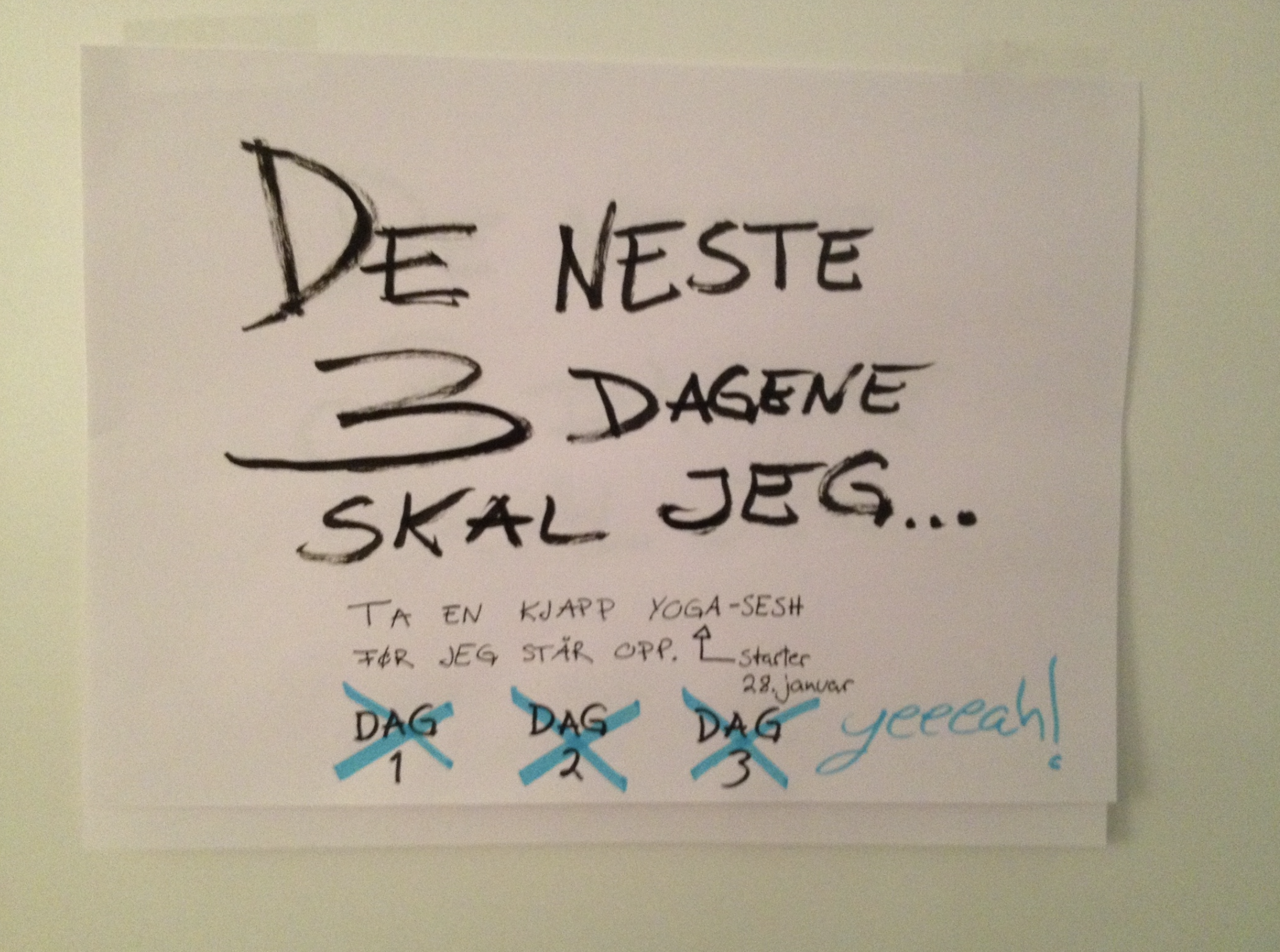 Med et sånt “ultimatum” gir du deg sjøl et veldig dårlig utgangspunkt for å klare det du vil. For da er du i grunn dømt til å feile. Er det hver dag.. i all evighet? Eller er det hver dag denne uka? Om du bare sier at du skal gjøre noe hver dag så skaper du ikke rammene for å bli fornøyd med innsatsen din.