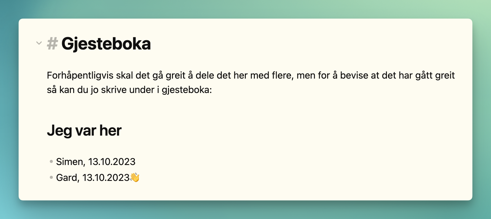 Om du laster ned din egen kopi så husk å skriv deg opp i gjesteboka! 👋