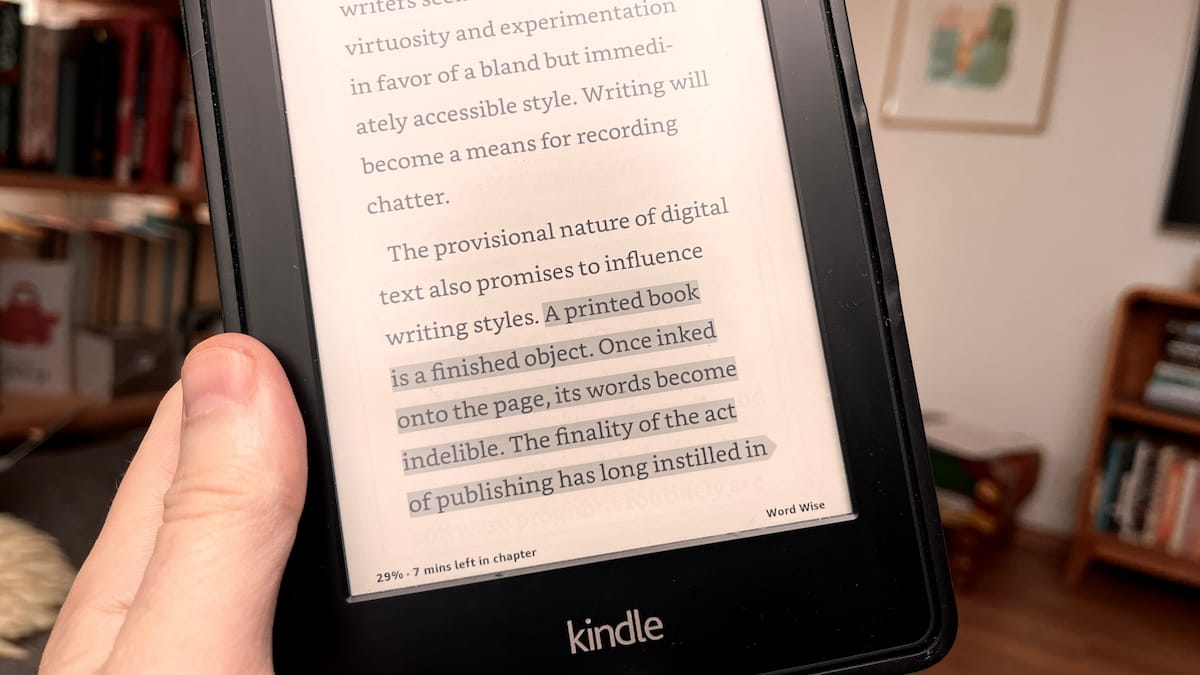 På kveldstid leser jeg som regel noen få sider i senga for å bli trøtt nok til å sove, og for å roe ned hjernen. Da leser jeg på en Kindle, som sikkert er 7-8 år gammel nå, men den holder koken som bare det. Hvis jeg snubler over en fin formulering, eller noe interessant som jeg vil spare til seinere så mar†kerer jeg bare setningen, og da veit jeg at den synkroniseres med Readwise i løpet av kort tid.