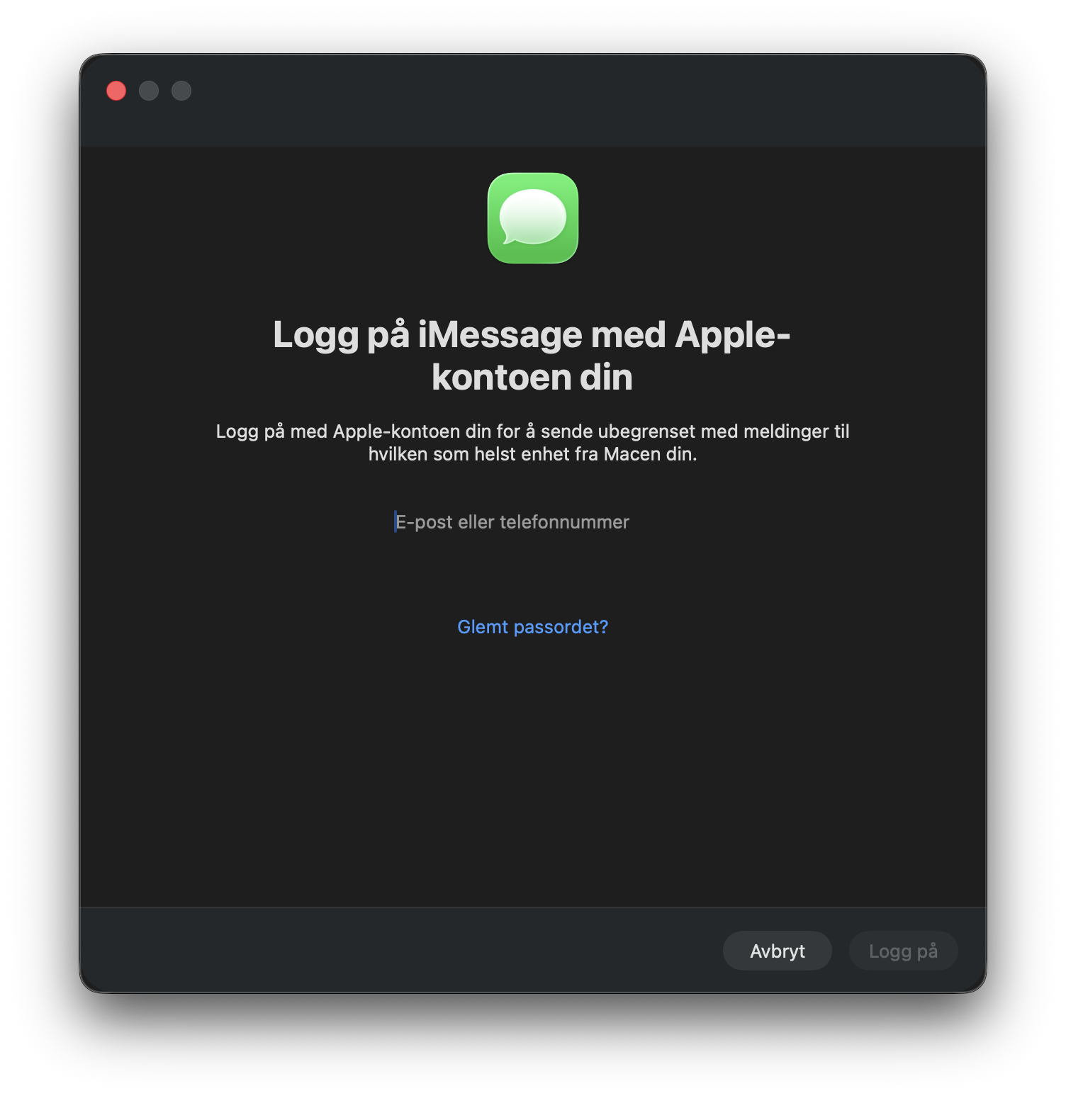 For at det skal fungere må du være logget inn med Apple-kontoen for å sende det som iMessage.