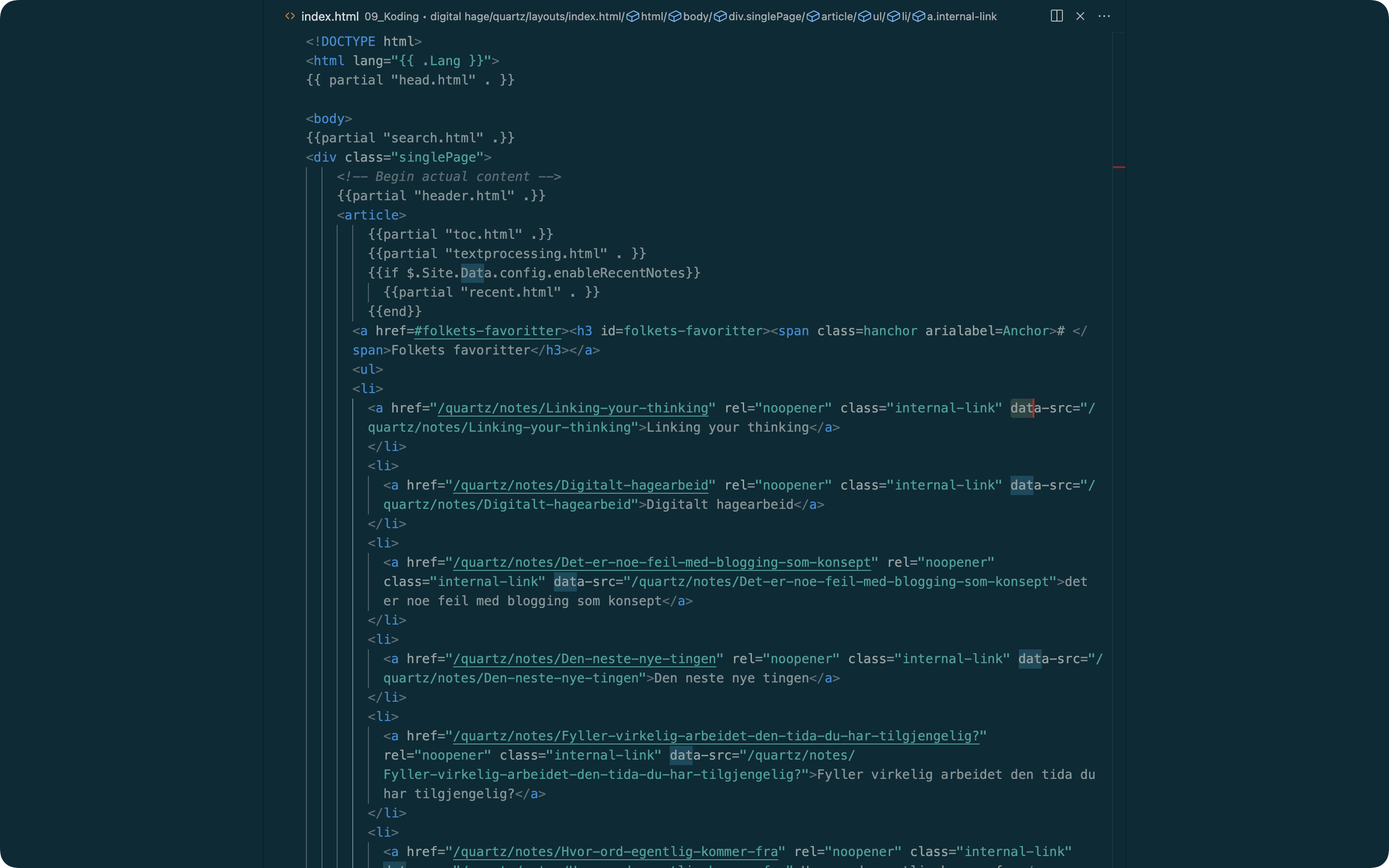 Jeg mener også at interessene dine bygger videre på hverandre i hageformatet, i større grad. For med en blogg vil du kanskje hoppe fra én kontekst til en annen, mens med en digital hage føles det mer som en forlengelse – som en invitasjon til å dykke dypere i et sidespor, om du vil.