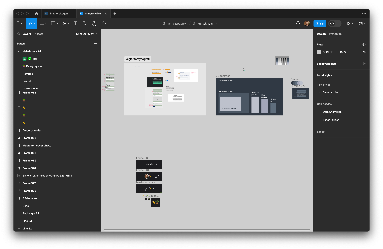 Når jeg tenker ut noe i Figjam, eller jobber med et grensesnitt i Figma er det også noenlunde likt, bare langt flere verktøy.