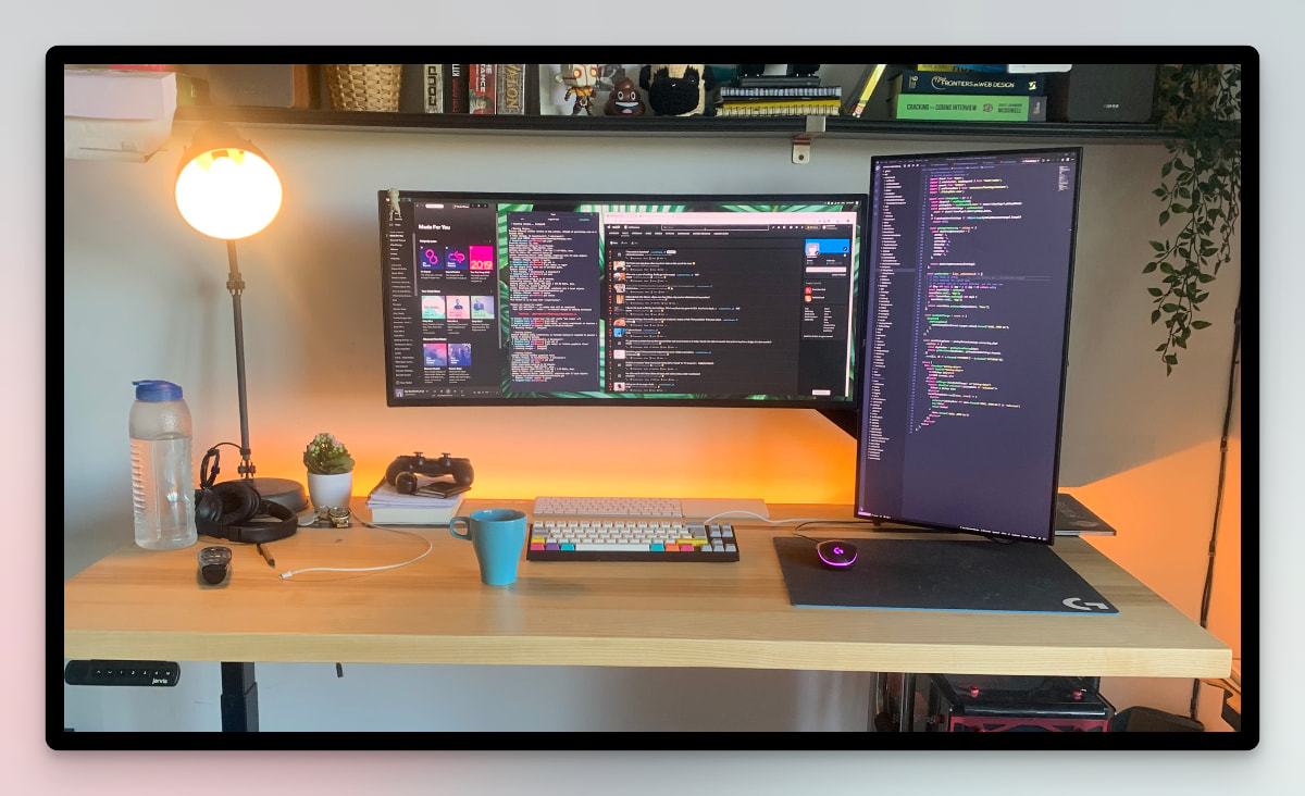 Hvor mye tjener vi egentlig på å se nesten dobbelt så mange linjer med kode uten å scrolle? For det er flere som skriver om store økninger i produktivitet ved å inkludere en vertikal skjerm i oppsettet sitt. Det jaget der etter økt produktivitet blir ganske tullete etterhvert, spør du meg.